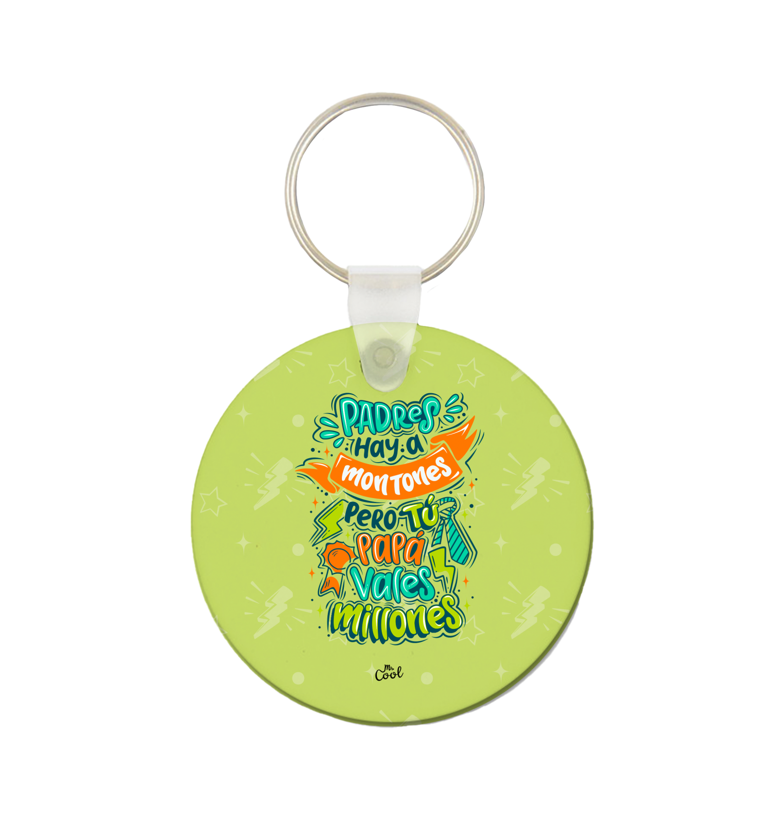 Pack de 5 llaveros circulares con frases originales marca Mr. Cool, fabricado en España.