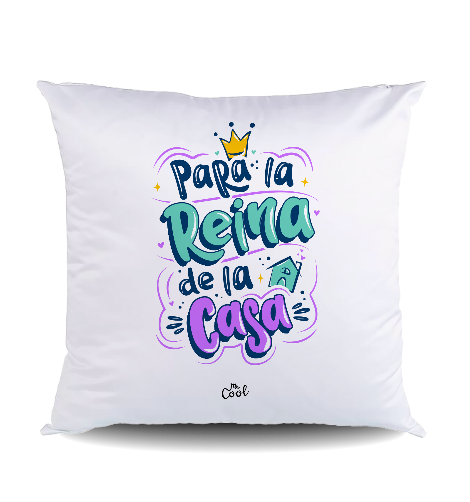 Cojín cuadrado con frases originales marca Mr. Cool, fabricado en España.