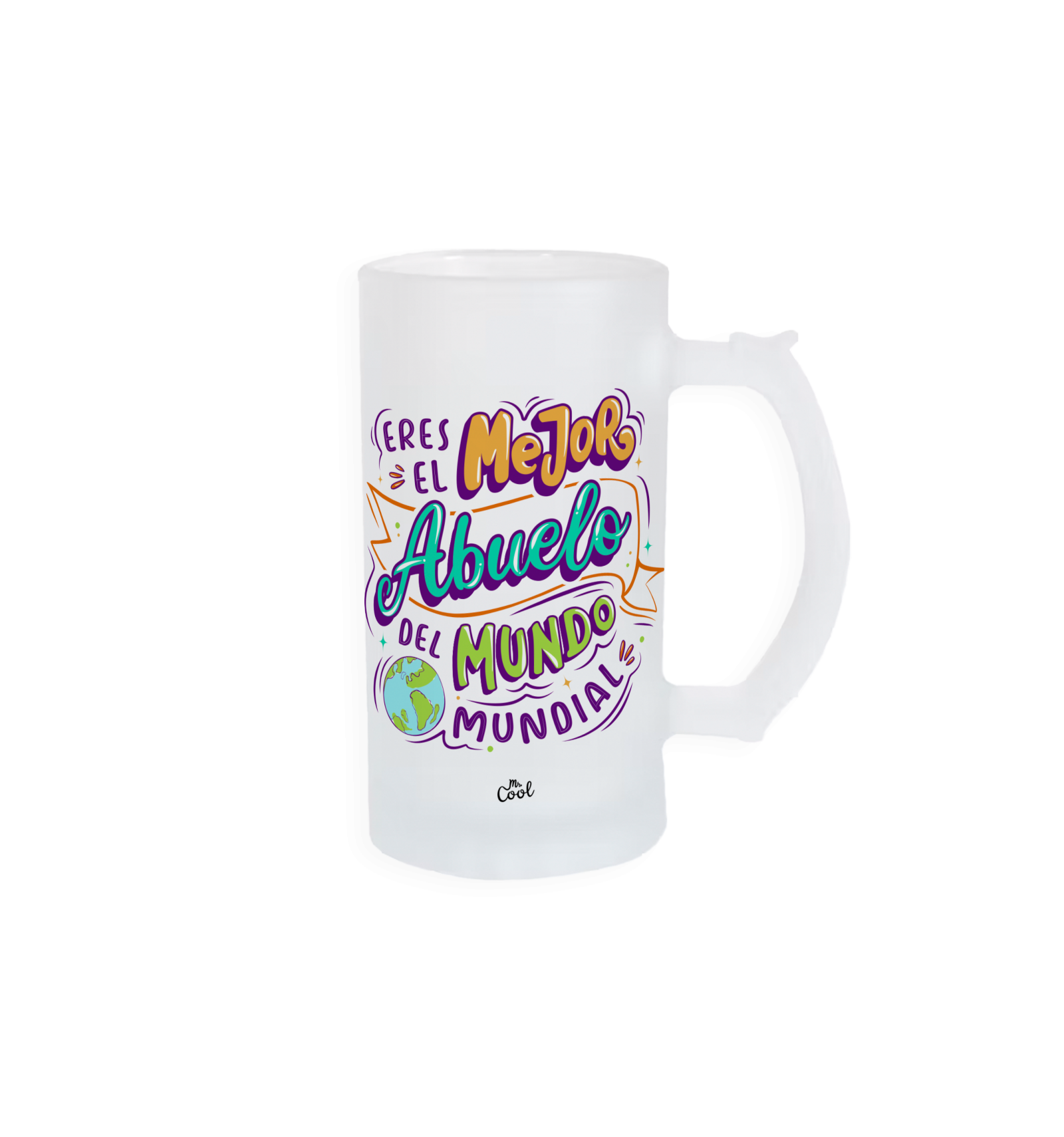 Jarra cristal opaco o esmerilado con frases originales marca Mr. Cool, apta para microondas y lavavajillas. Y podrás meter la taza sin liquidos en el congelador para tener bebidas muy frias.