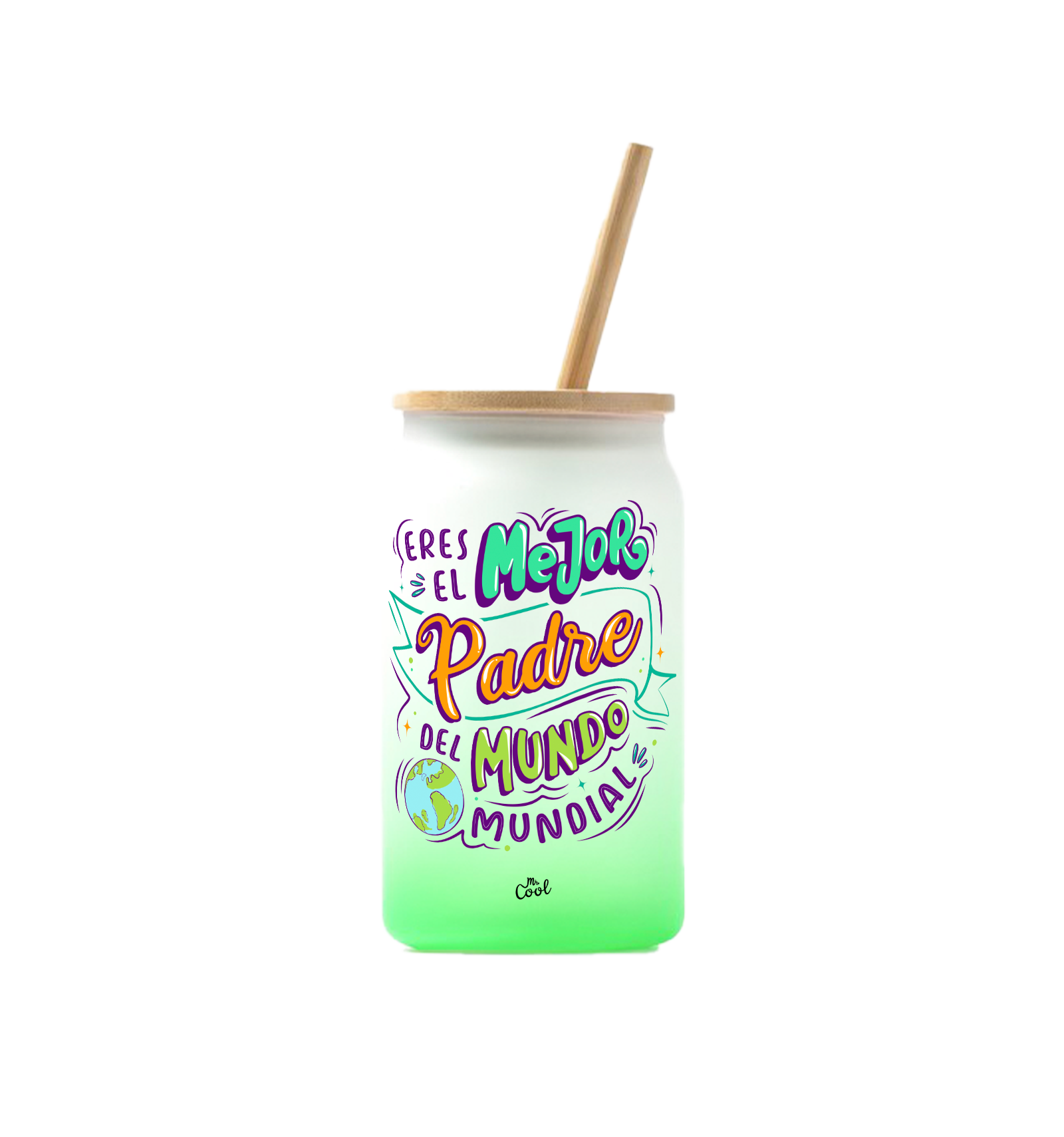 Vaso de cristal degradado de 350ml con frases marca Mr. Cool.