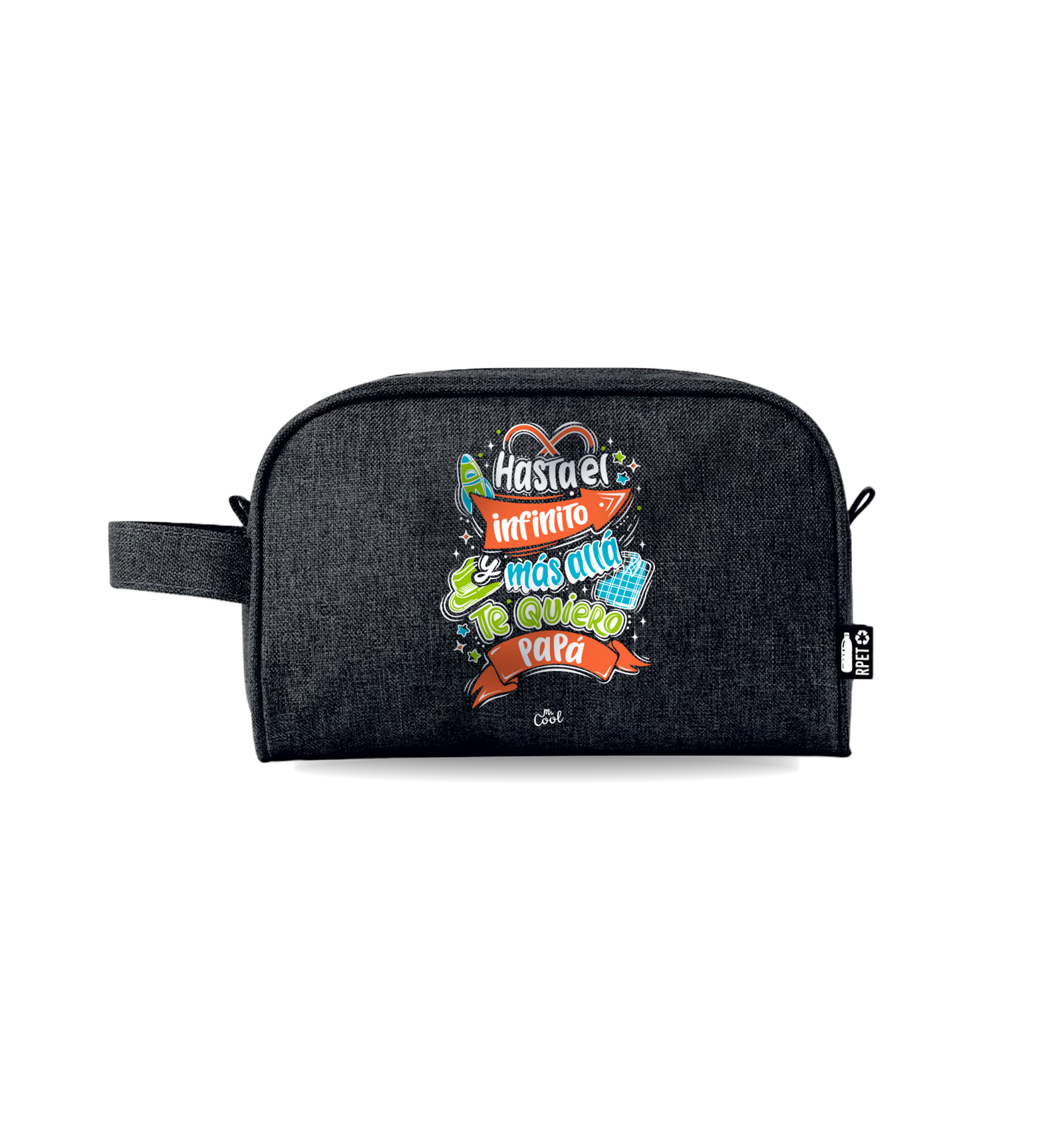 Neceser con frases originales marca Mr. Cool, fabricado en poliéster 600D RPET, color negro.