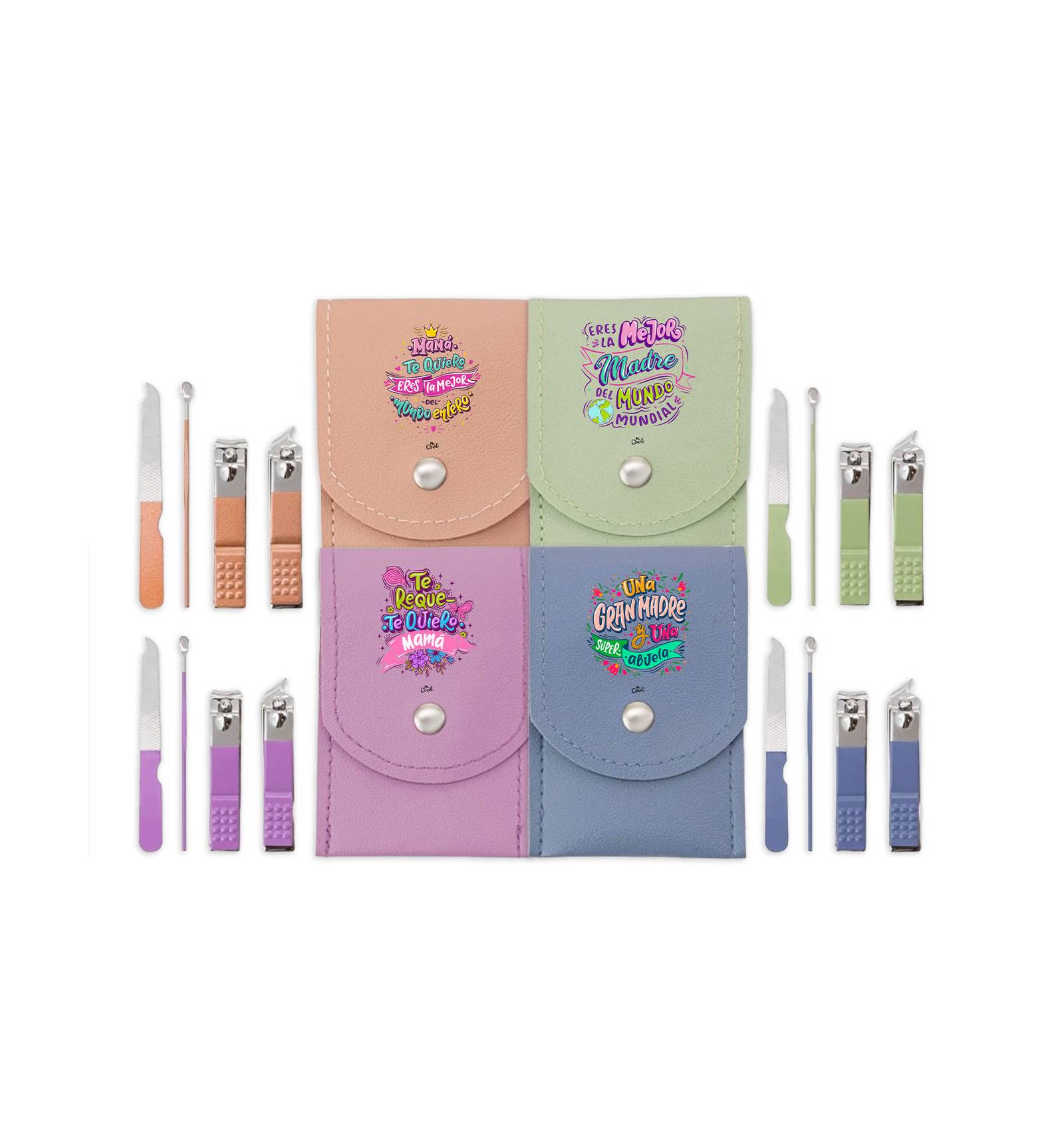4 Sets de manicura (colores surtidos) con frases originales marca Mr. Cool, fabricado en España.