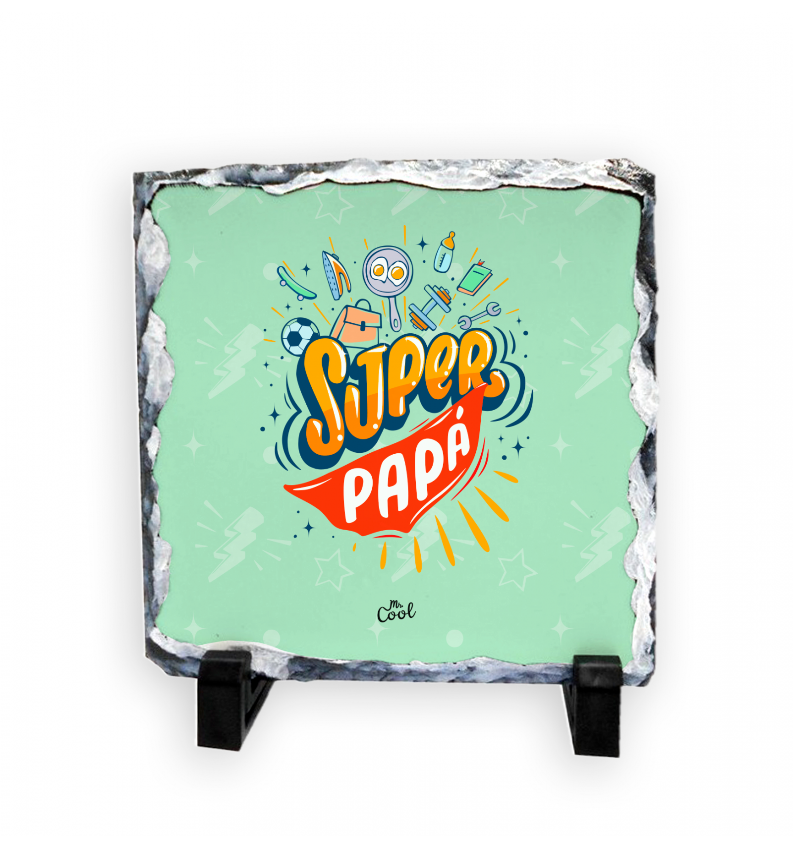 Pizarra cuadrada de piedra con frases originales marca Mr. Cool, fabricado en España.