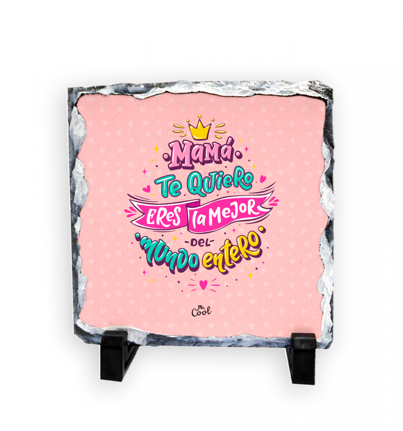 Pizarra cuadrada de piedra con frases originales marca Mr. Cool, fabricado en España.