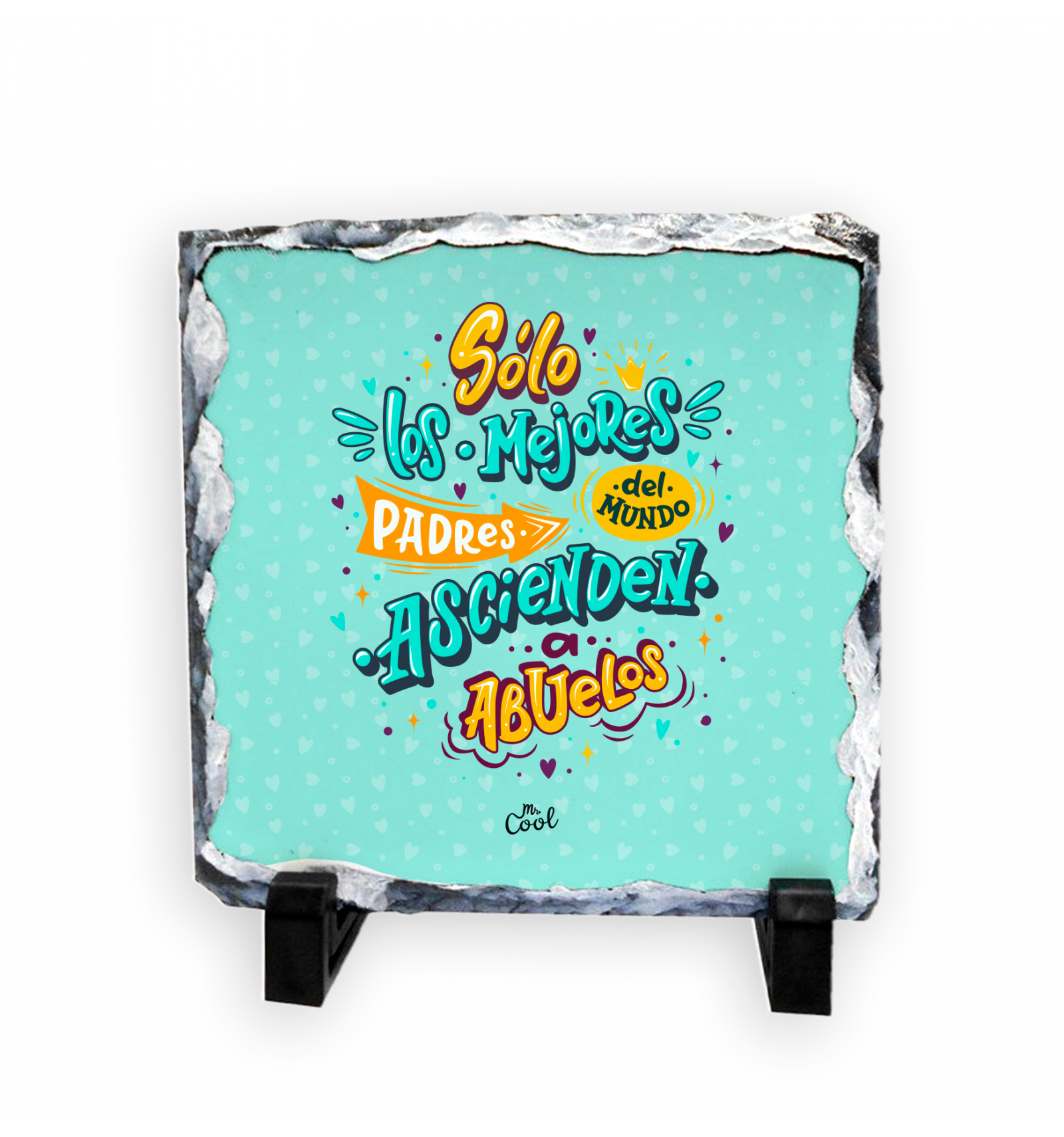 Pizarra cuadrada de piedra con frases originales marca Mr. Cool, fabricado en España.