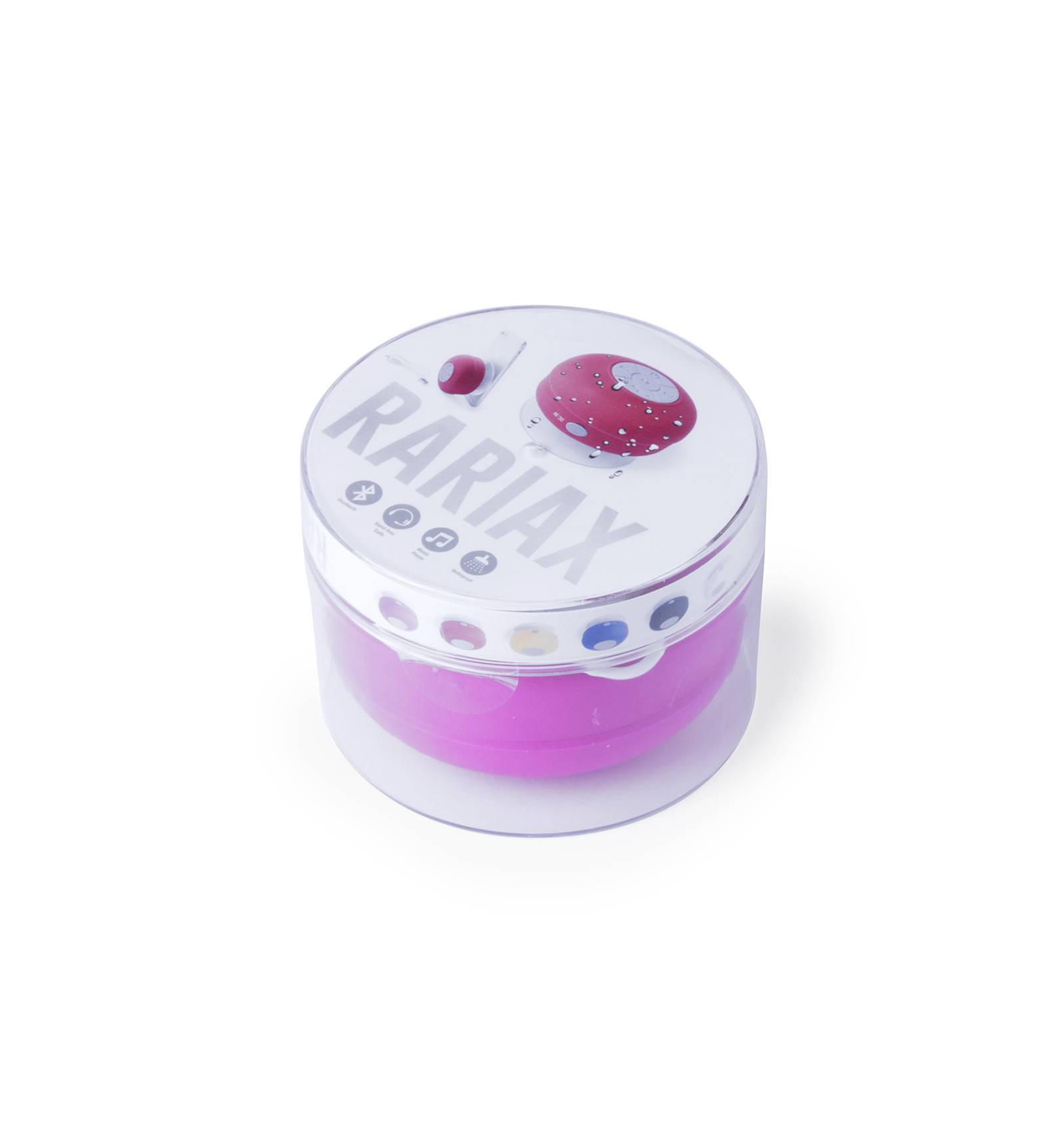 Se conecta a través de bluetooth. Forma redondeada con ventosa para poder pegarlo.
