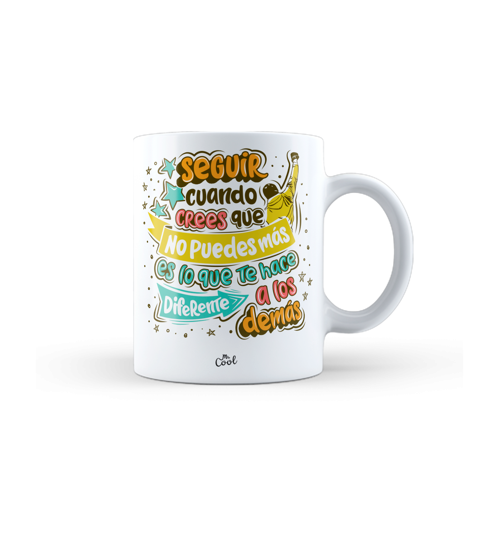 Taza con frases originales marca Mr. Cool, en cerámica de alta calidad y blanco brillante, apta para el microondas y el lavavajillas.