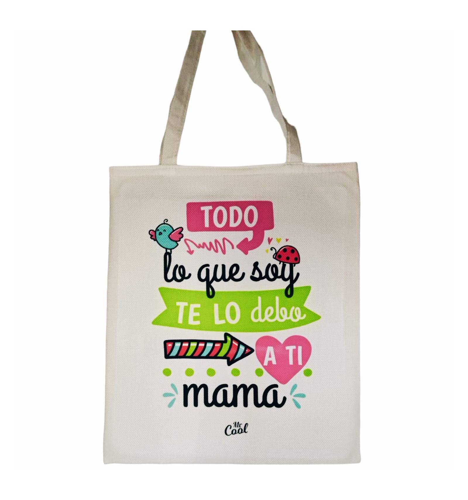Bolsa Tote Bag con frases originales marca Mr. Cool, fabricado en 100% poliester tipo lino, tacto suave.