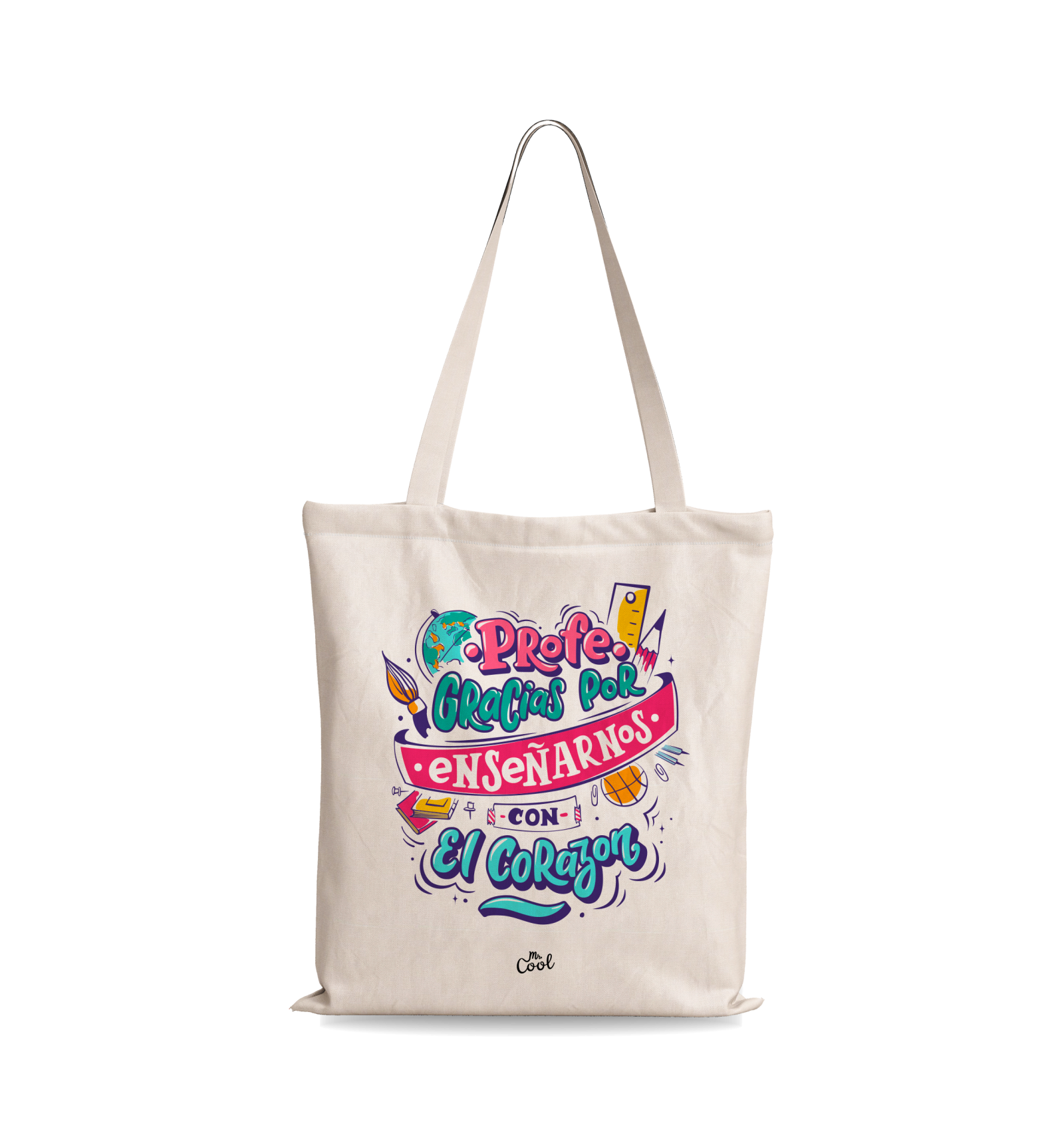 Bolsa Tote Bag con frases originales marca Mr. Cool, fabricado en 100% poliester tipo lino, tacto suave.