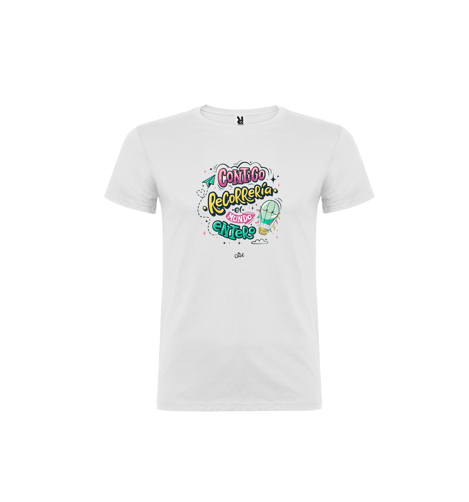 Camiseta blanca – Contigo recorrería el mundo entero Expand