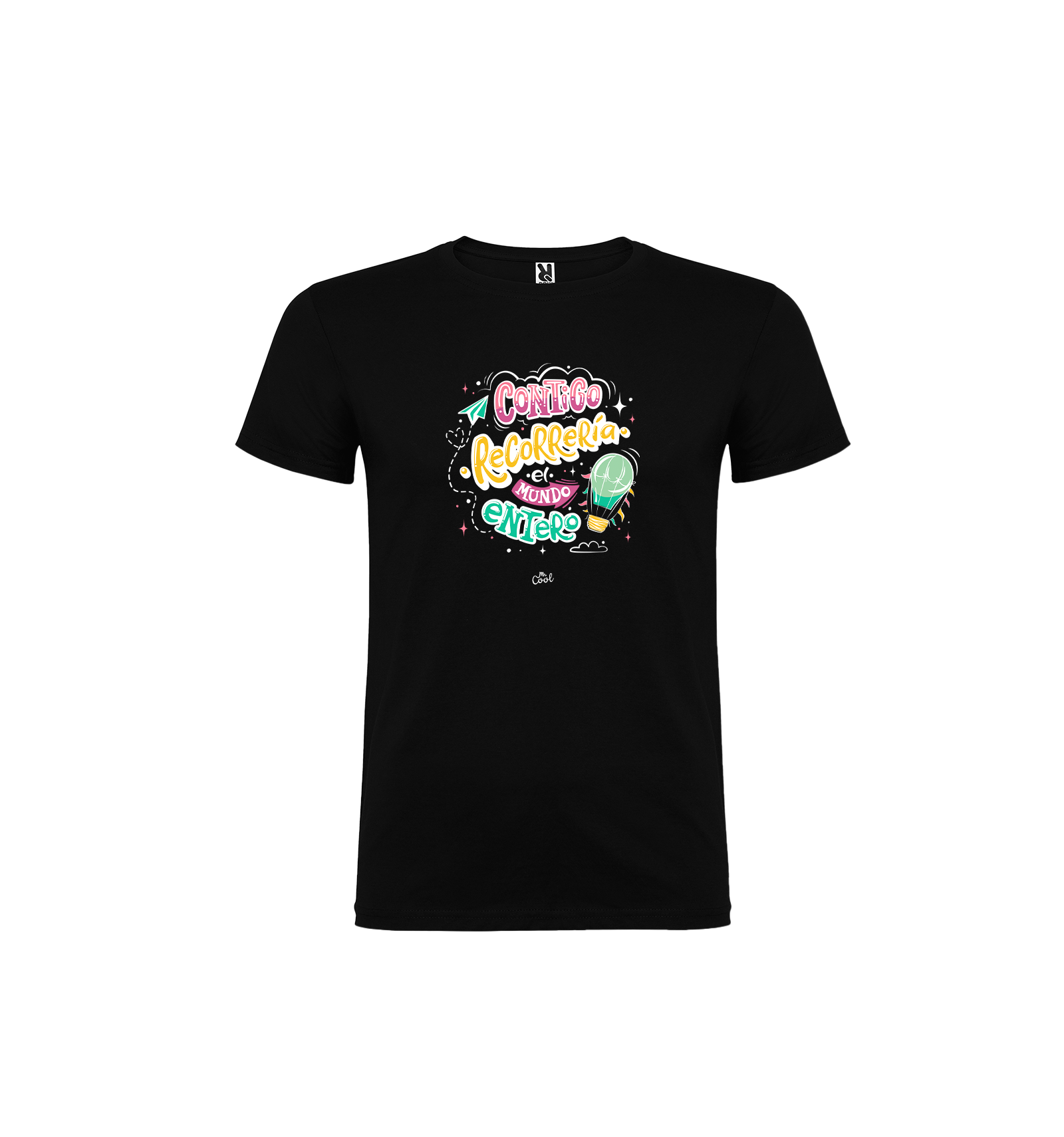 Camiseta negra – Contigo recorrería el mundo entero Expand