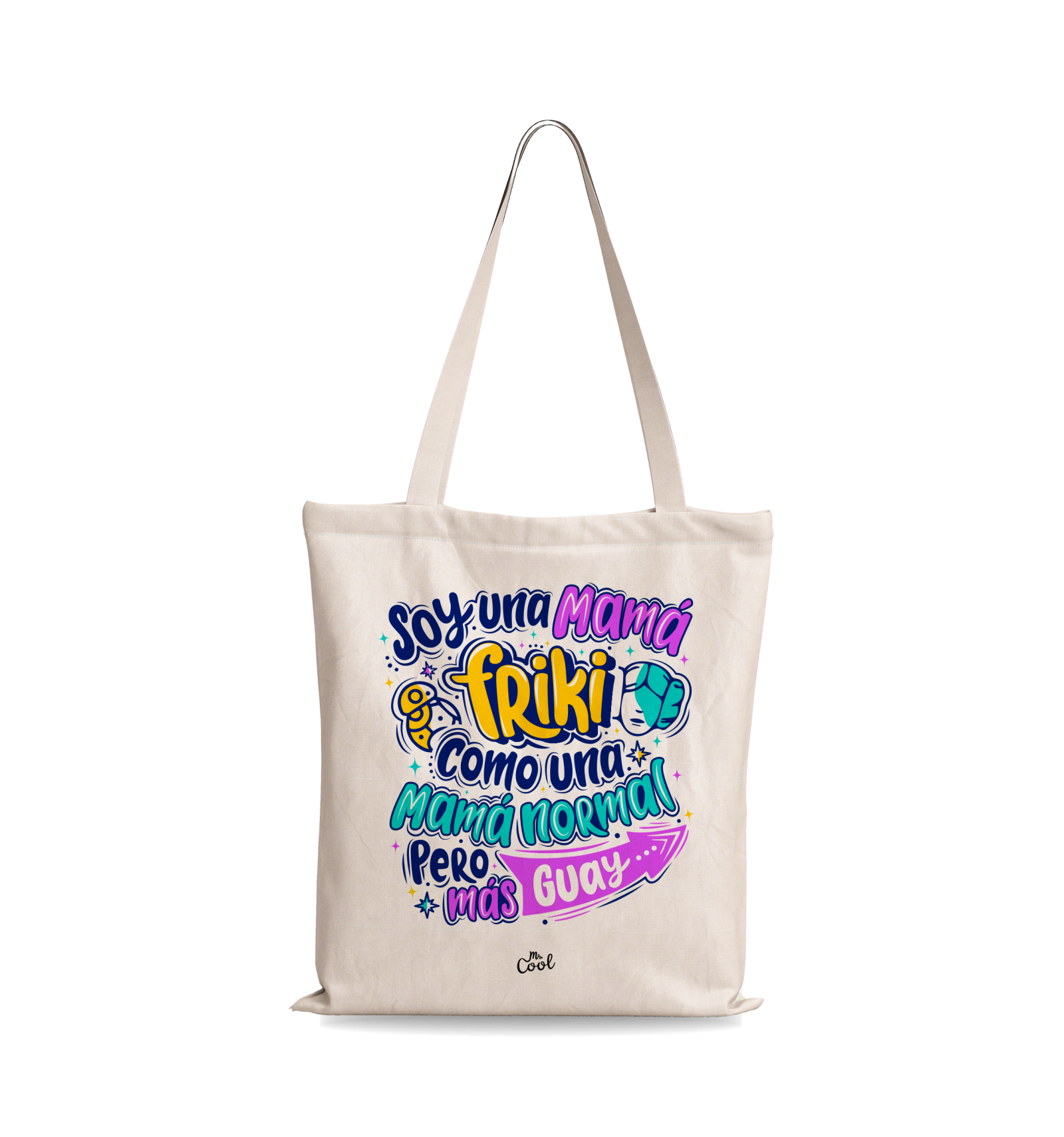 Bolsa Tote Bag con frases originales marca Mr. Cool, fabricado en 100% poliester tipo lino, tacto suave.